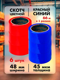 Цветной скотч, красный и синий, 6 роликов в размере 48х66х45
