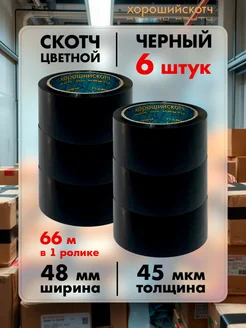 Цветной скотч, черный, 6 роликов в размере 48х66х45