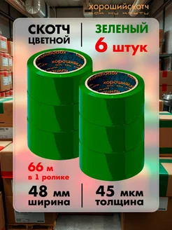 Цветной скотч, зеленый, 6 роликов в размере 48х66х45