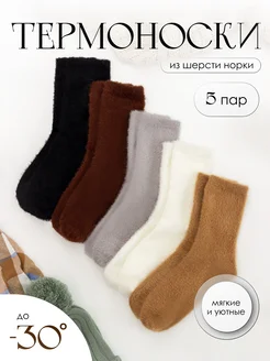 Носки термоноски теплые норка шерсть набор короткие 5 пар