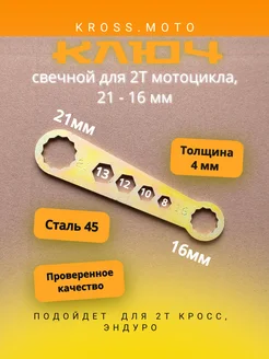 Ключ свечной для мотоцикла 21 x 16