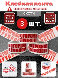 Клейкая лента Скотч - осторожно хрупкое - 3шт