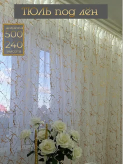 Тюль под лён золото с утяжелителем 500*240 см в гостиную