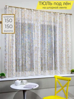 Тюль под лён золото 150х150 на кухню спальню короткая