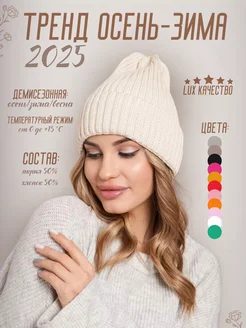 Шапка демисезонная вязаная с отворотом бини тонкая