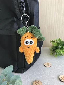 Брелок обвес Веселая морковка вязаный, мягкая игрушка