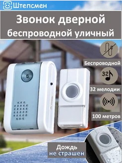Звонок беспроводной дверной на батарейках уличный (IP44)
