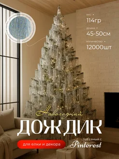 Дождик тонкий новогодний для украшения елки и декора на нг