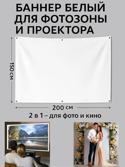 Белый баннер 200×150см для проектора и фотозоны с люверсами