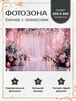 Баннер на свадьбу 3×2 м — розовая фотозона без надписи