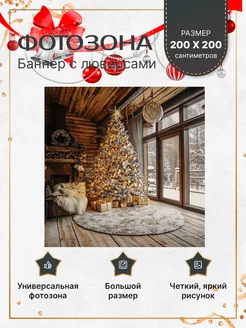 Фотозона Новый год 2×2 баннер с люверсами интерьер