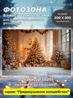 Фотозона Новый год 2×3 баннер с люверсами интерьер