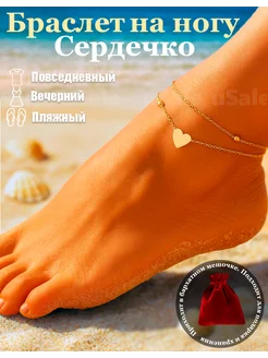 Браслет на ногу 2 цепочки сердце