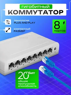 Коммутатор 8 портовый 1Гбит сек. Суммарно 20 Гбит с
