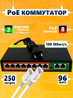 PoE коммутатор 8 портов POE 2 uplink 100mbit 802.3 af at