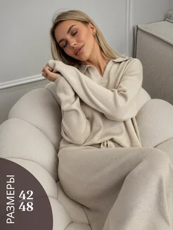 Костюм двойка с юбкой и топом трикотажный в рубчик летний