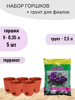 Набор горшков 9.5 см терракот 5 шт + грунт для фиалок