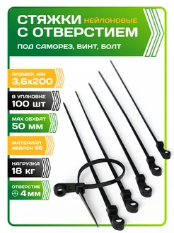 Хомут для стяжки с отверстием под саморез 3,6х200 черный