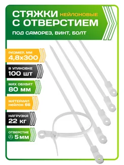 Хомут для стяжки с отверстием под саморез 4,8х300 белый
