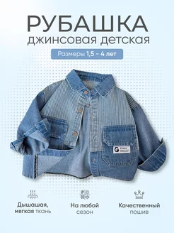 Рубашка детская джинсовая оверсайз с карманами в садик