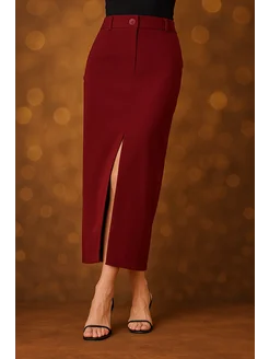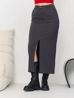 Юбка миди c разрезом офисная осенняя