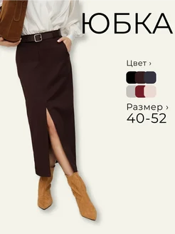 Юбка миди c разрезом осенняя офис длинная