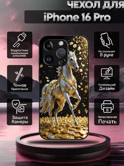 Чехол на iPhone 16 Pro Золотой конь