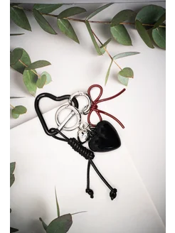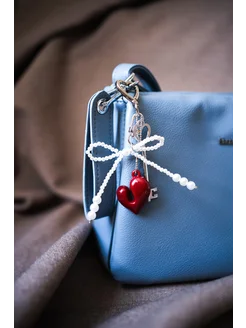 Обвес брелок на сумку бант из жемчуга красное сердце