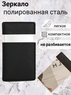Карманное Зеркальце металлическое Черное, полированная сталь