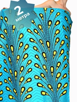 Голубая ткань этнический принт африканский хлопок 2 метра