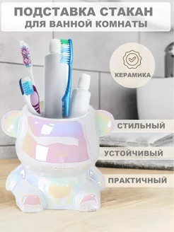 Подставка стакан для маникюрных инструментов Мишка, керамика