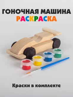 Деревянная игрушка гоночный автомобиль. Набор для росписи
