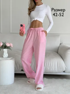 Штаны пижамные с завязками хлопковые домашние в полоску