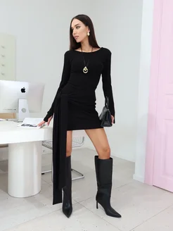 Платье вечернее короткое со шлейфом и узлом