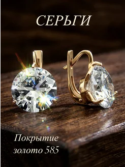 Позолоченные серьги с крупным камнем бижутерия