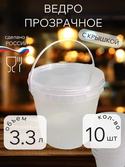 Ведро пищевое 3.3л 10 штук с крышкой, прозрачное