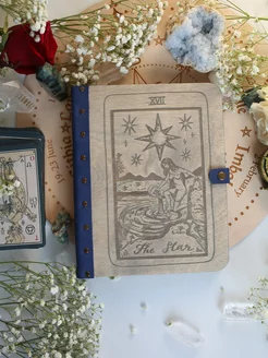 Тетрадь из дерева и кожи со сменным блоком, Таро Звезда
