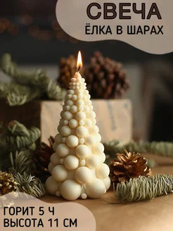 Свеча Новогодняя ёлка с шарами, интерьерная белая, 11 см