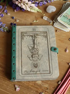 Тетрадь блочная на кольцах из дерева аркан Таро "Повешенный"