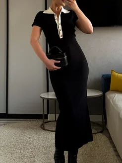 платье длинное черное поло