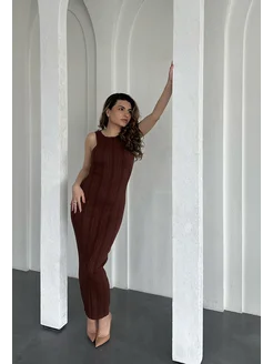 платье длинное коричневое