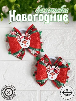 Новогодние бантики для волос "Олени"