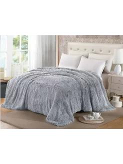 Плед травка мех Покрывало 220 на 240 см - Светло Серый