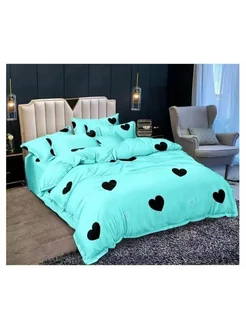 Комплект Постельного Белья 2-х спальное Бирюзовый Сердечки