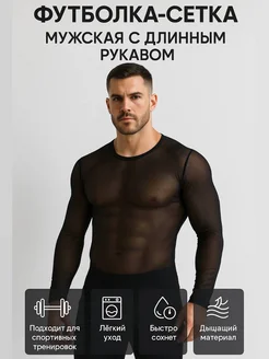 Мужская прозрачная футболка-сетка с длинным рукавом