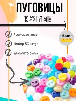 Пуговицы для творчества цветные "Круглые" набор 50 шт, 6 мм