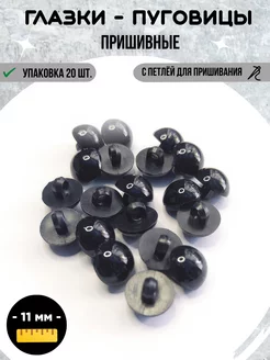 Глазки-пуговицы пришивные для игрушек, d=11 мм, набор 20 шт