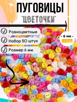 Пуговицы для творчества цветные "Цветочки" 50 шт, 6 мм