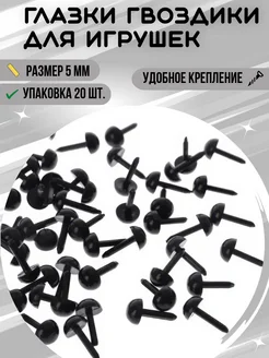 Глаза для игрушек гвоздики черные 5 мм, набор 20 шт