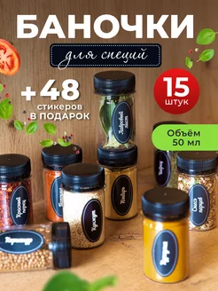 Баночки для специй с дозатором и наклейки 150мл 6 шт